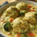 This Broccoli Cheddar Chicken and Dumplings is the kind of cozy, stick-to-your-ribs meal that makes any evening feel like home. Tender pieces of chicken swim in a savory, garlicky broth with soft carrots, celery, and onion, while bright broccoli florets add a fresh pop of color and texture. Spoonfuls of flaky biscuit dough steam on top, soaking up the rich broth and melting bits of cheddar into every bite. The aroma is warm and comforting, with butter and garlic rounding out the savory notes. Serve this when you want a satisfying weeknight dinner, a bowl for chilly weekends, or a potluck favorite that feeds a crowd. If you enjoy other comforting chicken classics, you might like this easy chicken and dumplings recipe for another take on a beloved favorite.