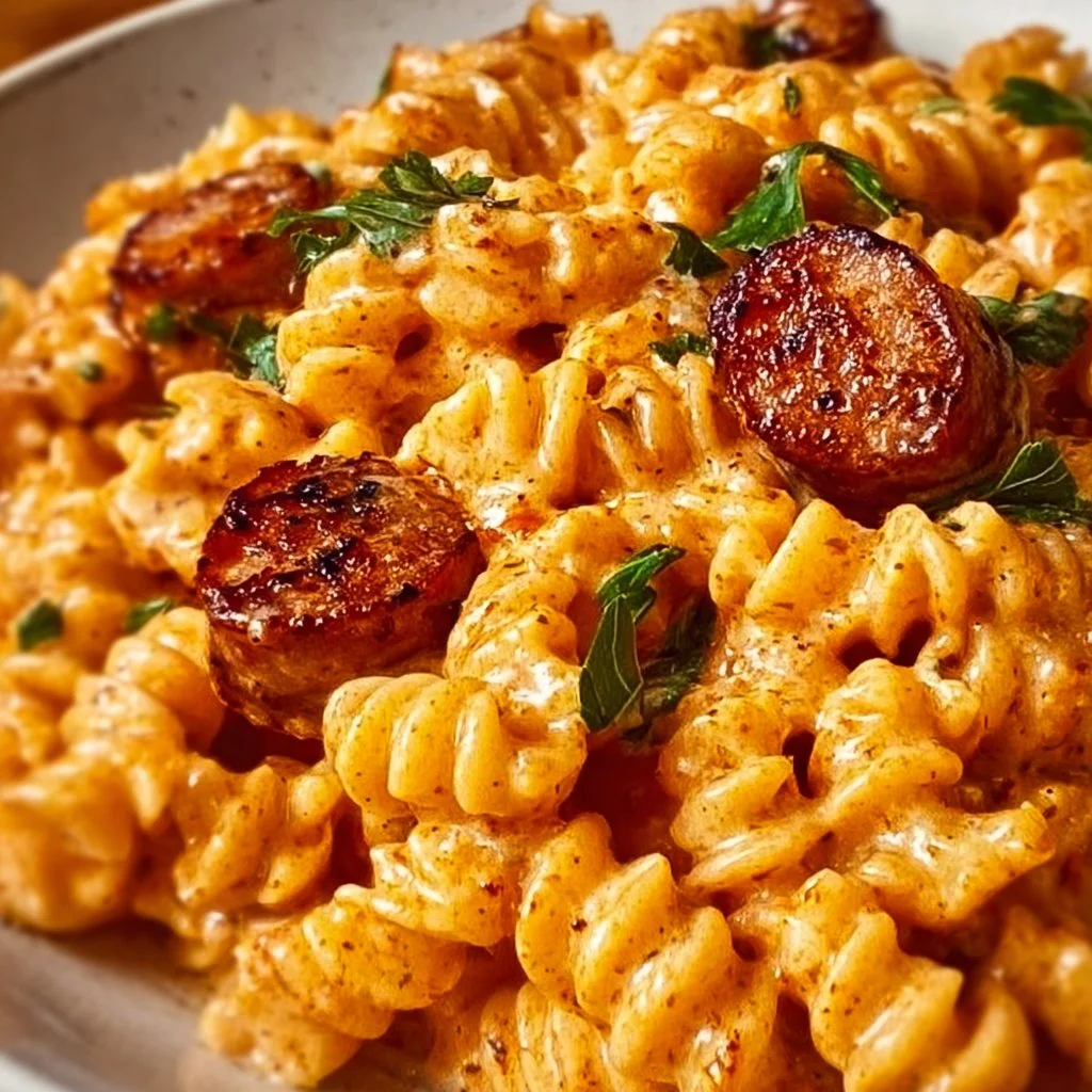 A creamy pasta dish infused with the smoky richness of Cajun-spiced sausage, perfect for weeknight dinners or family gatherings.