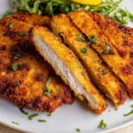 A delightful Chicken Milanese recipe featuring tender chicken breasts coated in a golden, crispy crust, perfect for family meals.