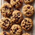 These Chocolate Cranberry Walnut Cookies are a cozy, crowd-pleasing bake that balances deep chocolate, bright dried cranberries, and toasty walnuts in a large, chewy oat-studded cookie. Each bite gives a pleasant chew from the old-fashioned oats, a tender crumb from the mix of all-purpose and cake flours, and pockets of bittersweet chocolate that melt into the warm cookie. The aroma is warm and comforting, with vanilla, cinnamon, and a hint of molasses weaving through the toasted walnut scent. They are ideal for holiday cookie exchanges, afternoon tea, lunchbox treats, or anytime you want a slightly rustic, substantial cookie that pairs wonderfully with coffee or a glass of milk. These cookies keep well and travel nicely, making them a great choice for gifting or potlucks when you want something that feels homemade and just a little indulgent.