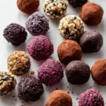 Warm, bite-sized and decadently smooth, these Chocolate Truffles are a simple way to enjoy pure chocolate bliss at home. The ganache center is rich and creamy, with a satin texture that melts on the tongue and releases an intense chocolate aroma. A light dusting of unsweetened cocoa powder keeps each bite slightly bitter and sophisticated, while sprinkles, crushed nuts, or an outer shell of melted chocolate add crunch, color, or extra richness. These truffles are ideal for gifting during the holidays, serving after dinner for a romantic dessert course, or making ahead for parties because they hold their shape well. If you enjoy experimenting with flavors, try pairing this classic with other recipes like Chocolate Avocado Truffles for a creamy alternative. With just a few quality ingredients and minimal hands-on time, you can create elegant confections that taste much more upscale than the effort required.