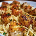 Warm, garlicky, and indulgent, this Garlic Butter Chicken Bites with Creamy Parmesan Pasta is the kind of dinner that feels like a hug on a plate. Tender cubed chicken seared until golden delivers a satisfying bite, while a velvety Parmesan and heavy cream sauce clings to every strand of pasta. The aroma of sautรฉed garlic and butter fills the kitchen, promising rich, savory flavor with a hint of paprika warmth. Texturally, you get a pleasing contrast between the crisped edges of the chicken and the silkiness of the sauce. This recipe comes together quickly, making it perfect for busy weeknights, casual date nights, or when you want comfort food without fuss. If you love brightening creamy dishes with a touch of citrus, try a related lemon garlic butter chicken twist for a zesty lift. Try a lemon garlic butter chicken recipe for another variation.
