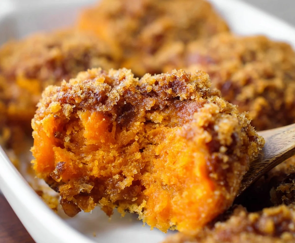 A warm and comforting Gluten Free Sweet Potato Casserole featuring sweet potatoes, a crunchy topping, and perfect for any family gathering or holiday feast.