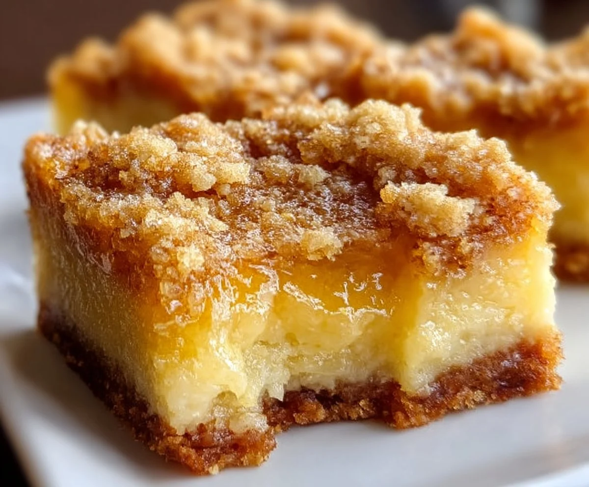 A delightful layered dessert combining creamy lemon filling with a crunchy crumble topping.