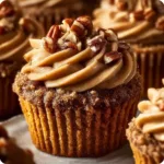Delightful Pecan Pie Cupcakes featuring a rich brown sugar frosting, capturing the classic flavors of pecan pie in a fun, portable format.
