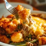 A comforting casserole featuring a creamy mushroom base, tender green beans, hearty ground beef, and crispy Tater Tots, perfect for weeknight dinners.